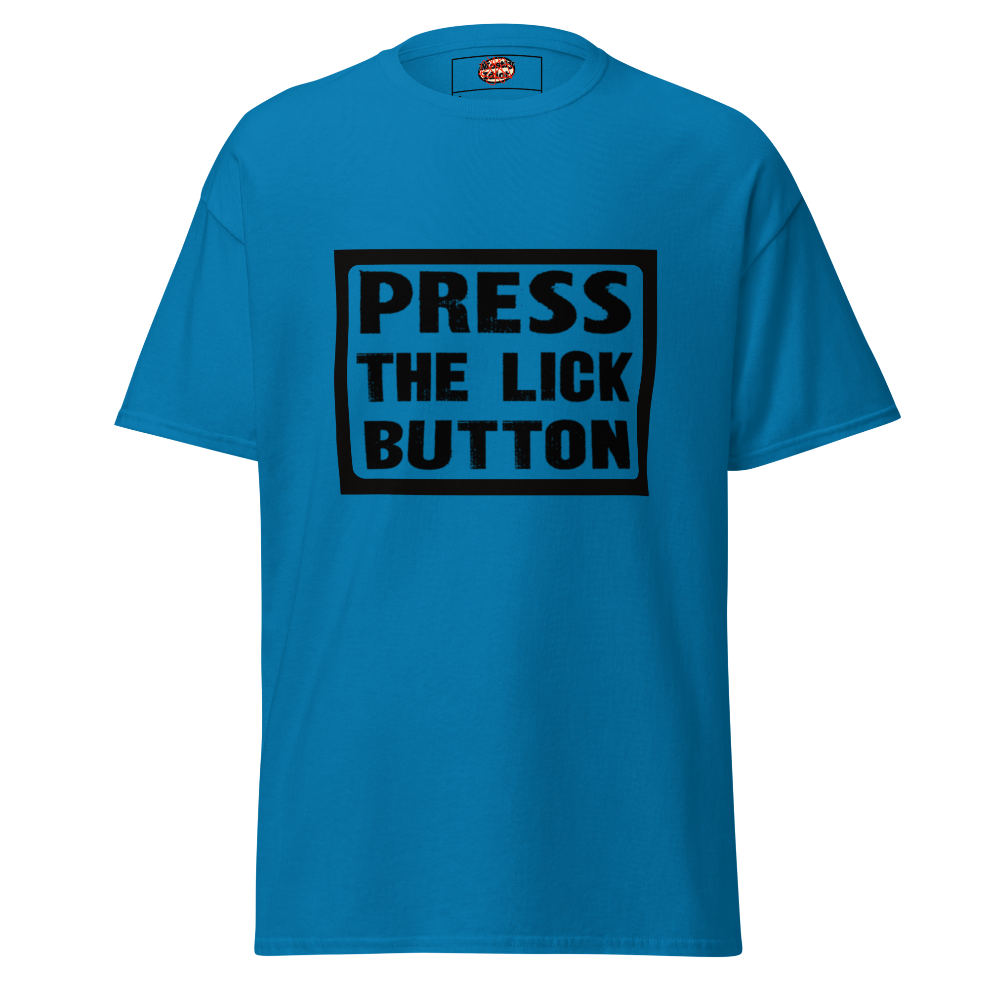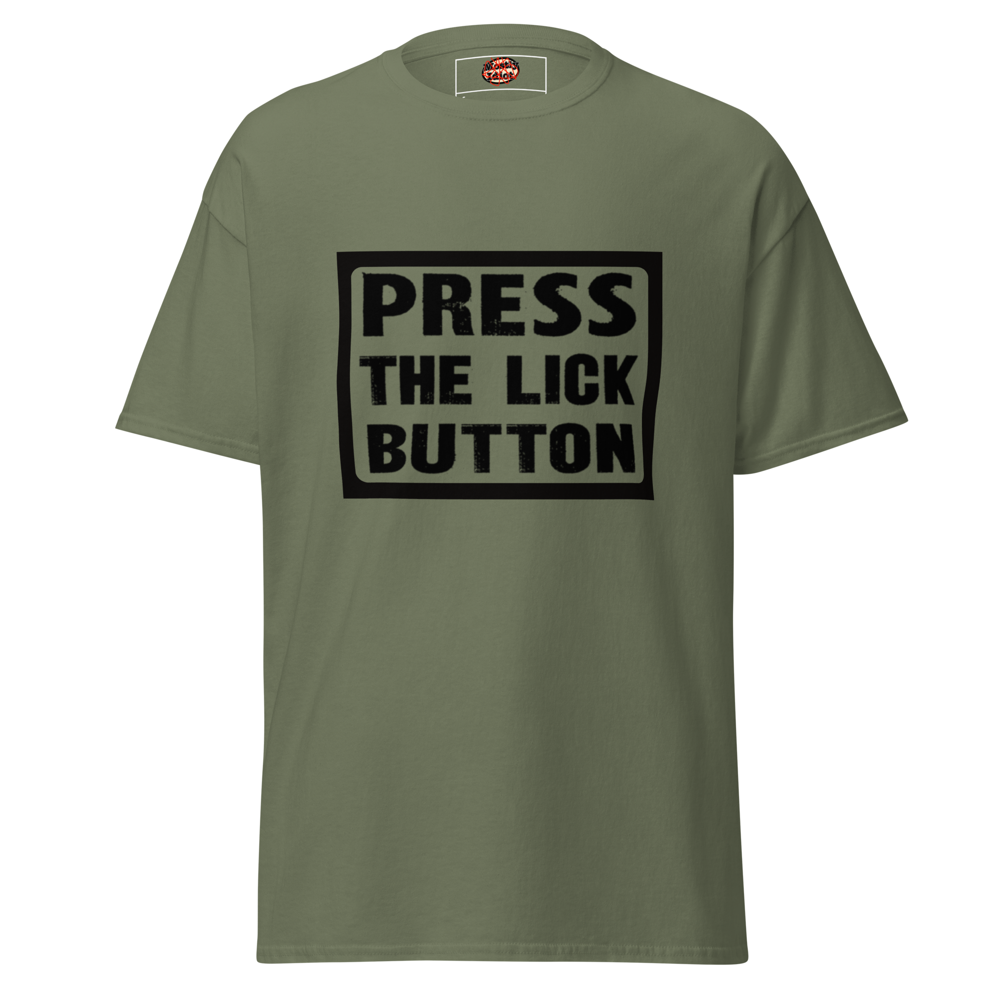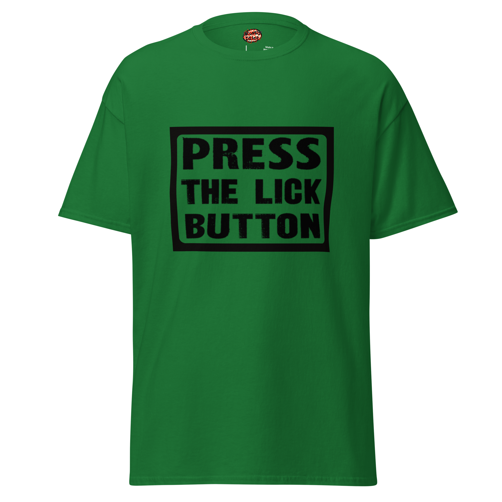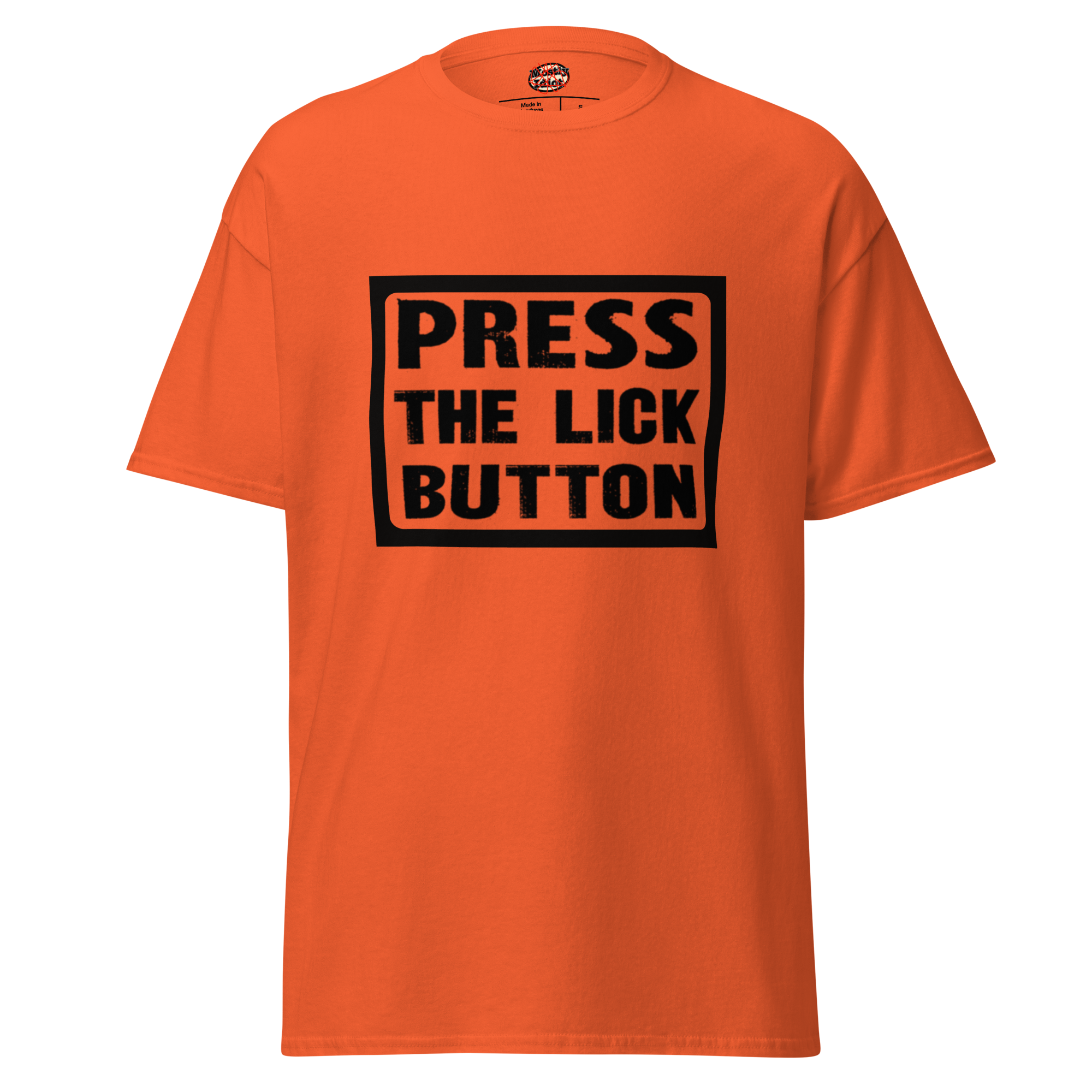 press the lick button tee black text